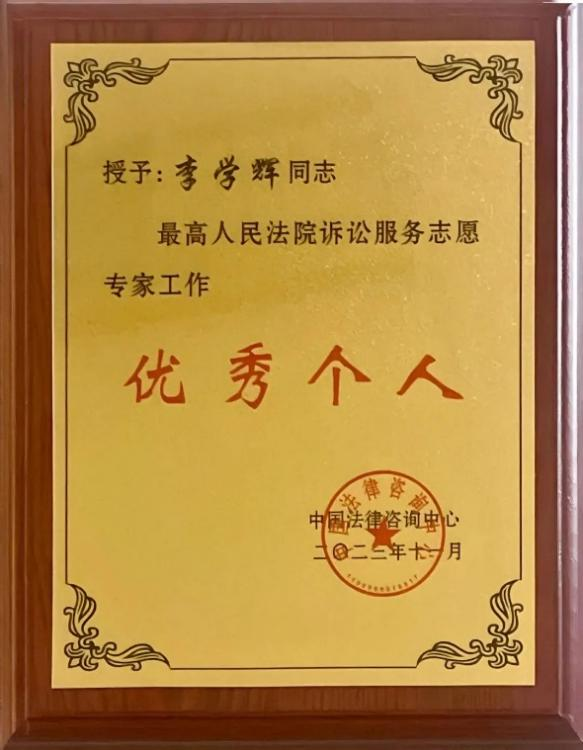 李學(xué)輝律師獲評“最高人民法院訴訟服務(wù)志愿專家工作優(yōu)秀個(gè)人”