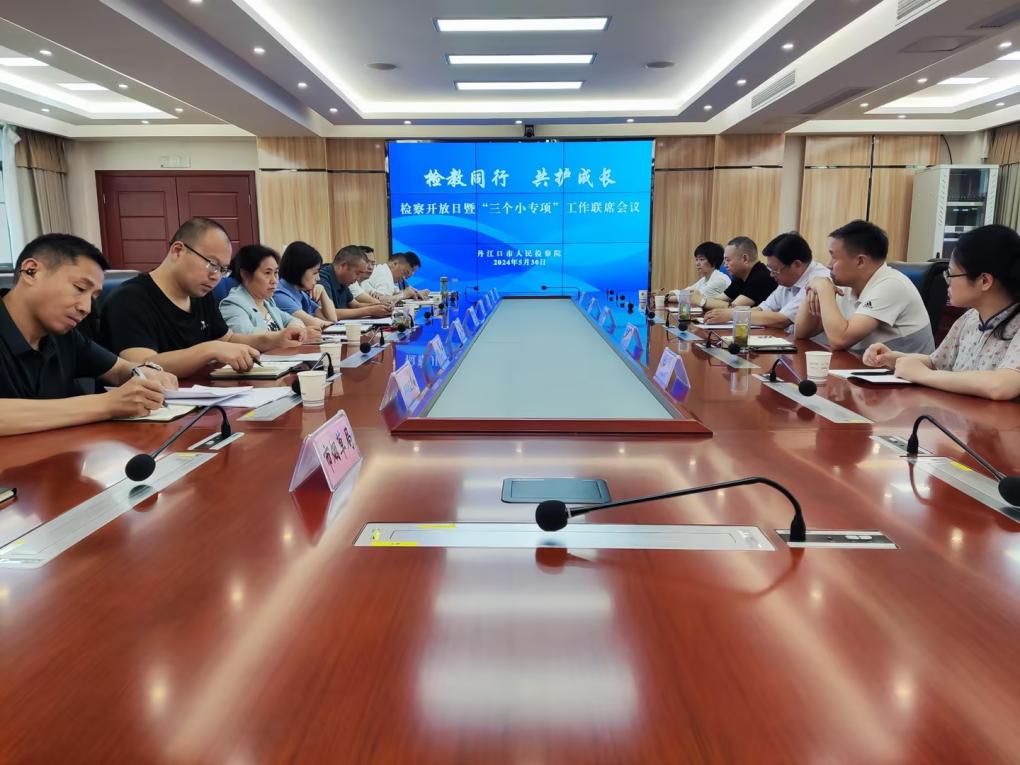 近日,湖北省丹江口市人民檢察院同當?shù)厥袌霰O(jiān)督管理局、教育局、煙草專賣局等相關(guān)單位,共同開展“檢教同行 共護成長”檢察開放日暨“三個小專項”工作聯(lián)席會,共同凝聚未成年人保護工作共識。