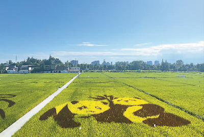 成都市溫江區(qū)和林稻海以異色水稻種出的熊貓稻田畫(huà) 記者 朱金宜 攝