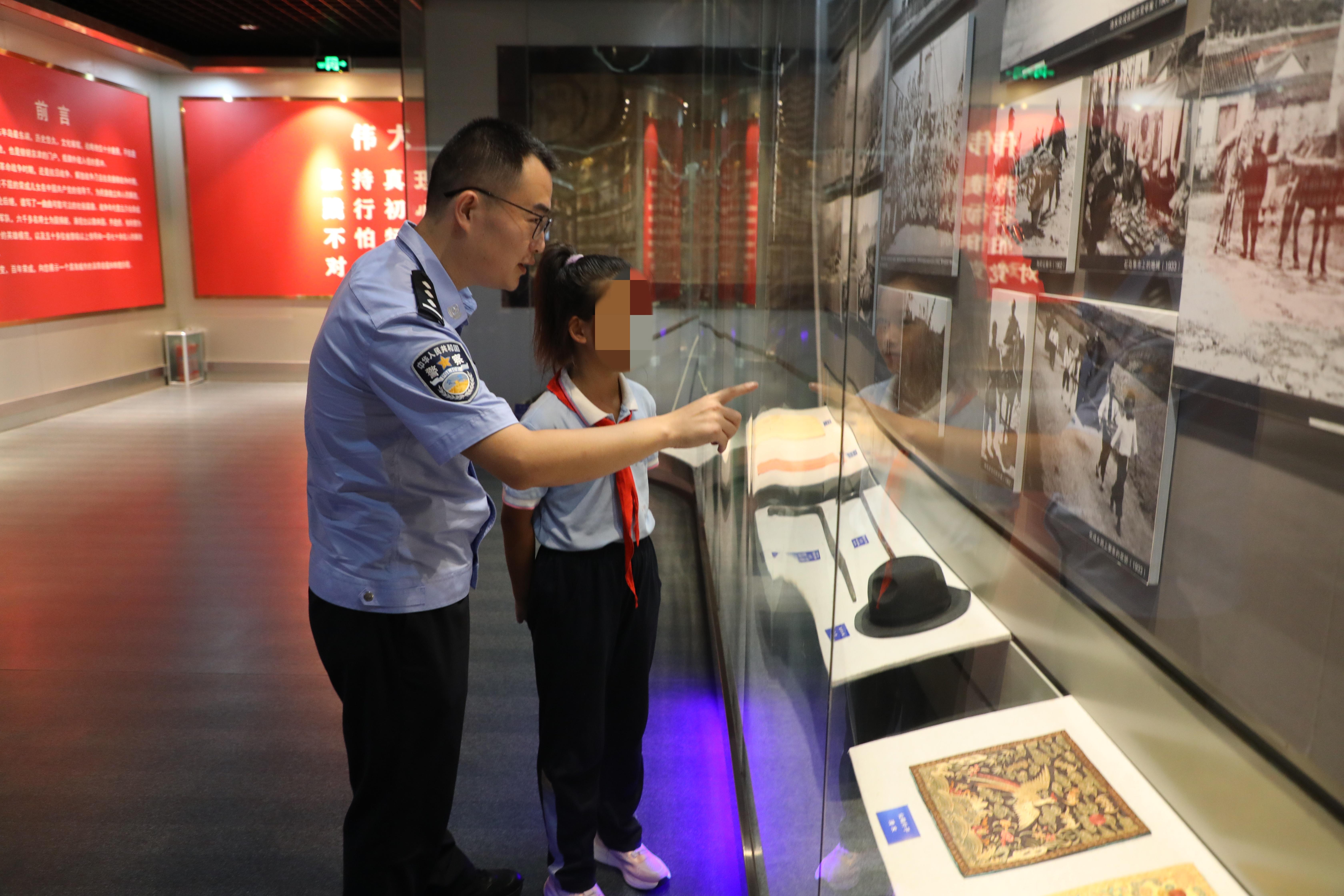 活動中,該站民警攜手駐地小學(xué)學(xué)生一起走進榮成市博物館“世紀榮成”展館,共同了解榮成從古至今的發(fā)展歷程,傳承紅色基因,弘揚愛國精神。整個展館共展出700多張珍貴照片、300多件珍貴文物資料,展示了榮成自辛亥革命以來百年社會進程、典型人物及榮成兒女取得的輝煌成就。通過一幅幅的歷史照片和抗戰(zhàn)時期歷史實物,生動再現(xiàn)了抗戰(zhàn)時期,無數(shù)英勇無畏的中華兒女,為了民族獨立和人民解放,浴血奮戰(zhàn)、前赴后繼的壯烈事跡。跟隨著解說員的講解,大家仿佛被帶入到那段艱苦卓絕、血雨腥風(fēng)的抗戰(zhàn)歲月,看到了戰(zhàn)爭背后鮮為人知的感人故事,心靈受到了洗禮,思想也得到了升華。