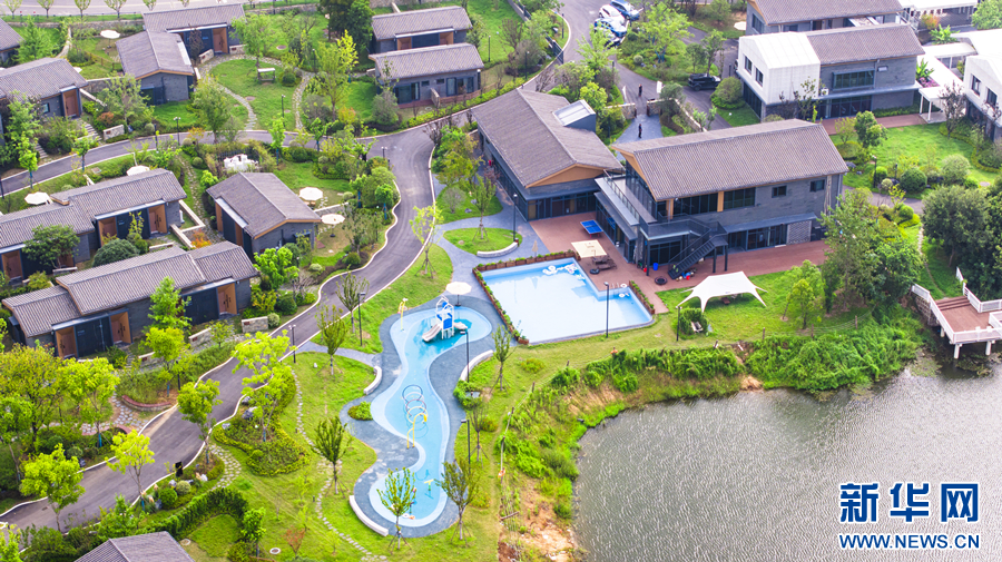 群山環(huán)抱中,溪流潺潺,林木蔥郁,一座座風(fēng)格各異的特色民宿依山傍水而建,猶如一顆顆明珠鑲嵌在綠意盎然的自然畫卷中。