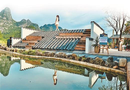 10月13日,位于七星區(qū)朝陽(yáng)鄉(xiāng)的網(wǎng)紅點(diǎn)山鏡小院依然熱度不減。游客們有的拿著魚(yú)竿在塘邊悠閑釣魚(yú),有的帶著孩子一起玩沙子、曬太陽(yáng),有的則走上“屋頂”擺出各種姿勢(shì)拍美照……大家各有所樂(lè)。