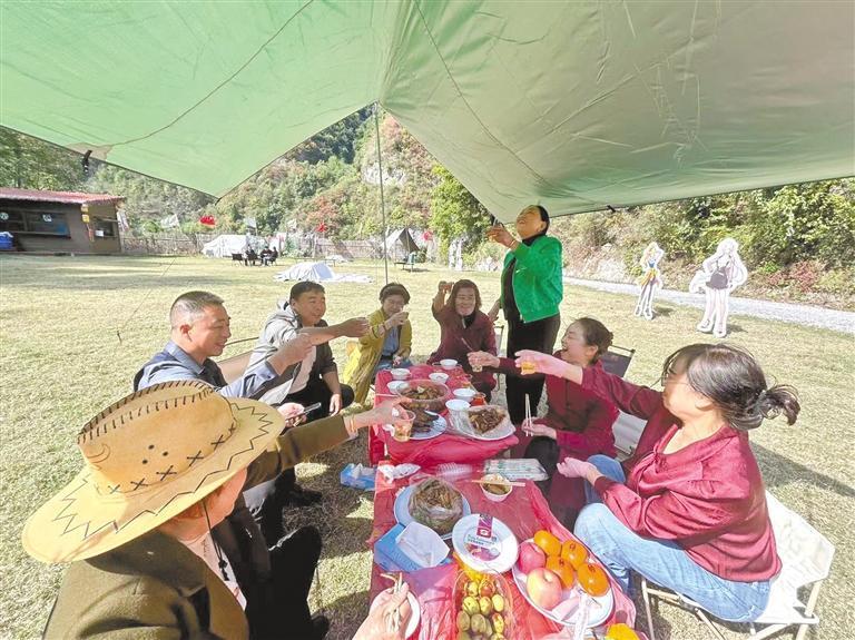 “我們的戶外特色帳篷‘星象’,一到節(jié)假日就得早早預(yù)訂。”神隱谷露營基地負(fù)責(zé)人胡桃根說,今年前10月,露營基地共接待游客10萬人次,帶動周邊20多名村民就業(yè)增收,也讓村里的特色農(nóng)產(chǎn)品賣上了好價(jià)錢。