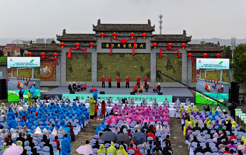 活動(dòng)現(xiàn)場,近千余名干部群眾齊聚雍城,百余名農(nóng)民群眾唱得響亮,氣氛熱烈。一曲《相約龍頭村》唱出了對(duì)家鄉(xiāng)的熱愛和贊美,拉開了活動(dòng)序幕。由村民自編自導(dǎo)自演的歌曲、舞蹈、戲曲、鼓樂等拿手好戲連番登臺(tái),原汁原味演繹了農(nóng)民群眾的生產(chǎn)生活,為現(xiàn)場的觀眾帶來了一場精彩絕倫的視聽盛宴,讓群眾在家門口樂享了鄉(xiāng)土味、煙火氣十足的文化大餐,實(shí)現(xiàn)了“群眾看戲”和“群眾演戲”的完美結(jié)合。歌伴舞《大地流彩靈動(dòng)鄉(xiāng)村》唱出了新時(shí)代廣大農(nóng)民群眾追求幸福、昂揚(yáng)向上的精神風(fēng)貌,《百善孝為先》《家風(fēng)》《紅棗棗》《我想能我想篩》《在希望的田野上》等歌曲,旋律時(shí)而宛轉(zhuǎn)悠揚(yáng)、空靈曼妙,時(shí)而激昂澎湃、振奮人心,時(shí)而舒緩低沉、柔情似水,每一個(gè)音符都在訴說著鄉(xiāng)音,每一曲都飽含著對(duì)三秦大地深沉的愛,余音繞梁。廣場舞《泥塑人家》和戲劇《秦瓊觀陣》,充分展示了國家級(jí)非物質(zhì)文化遺產(chǎn)名錄鳳翔泥塑、杖頭木偶的無限魅力。石家木偶戲、眉戶現(xiàn)代小戲《十二把鐮刀》、西府曲子《表花》、華陰老腔《華陰老腔一聲喊》和鎮(zhèn)安漁鼓《喜看碩果滿枝頭》等地方曲目,全面展現(xiàn)了極具陜西特色、富有農(nóng)趣農(nóng)味的傳統(tǒng)民俗文化和民間藝術(shù),也彰顯了鄉(xiāng)村全面振興的顯著成就,鄉(xiāng)村文化真真正正融入到群眾的“心坎里”。活動(dòng)過程中,西北農(nóng)林科技大學(xué)學(xué)生代表宣讀了“大學(xué)生服務(wù)鄉(xiāng)村文化振興”倡議書,志愿者代表交流分享了推進(jìn)農(nóng)村移風(fēng)易俗經(jīng)驗(yàn),《大愛》《家有喜事》以群眾喜聞樂見的形式進(jìn)行移風(fēng)易俗宣傳,打通了理論宣講面向群眾、服務(wù)群眾的“最后一公里”。
