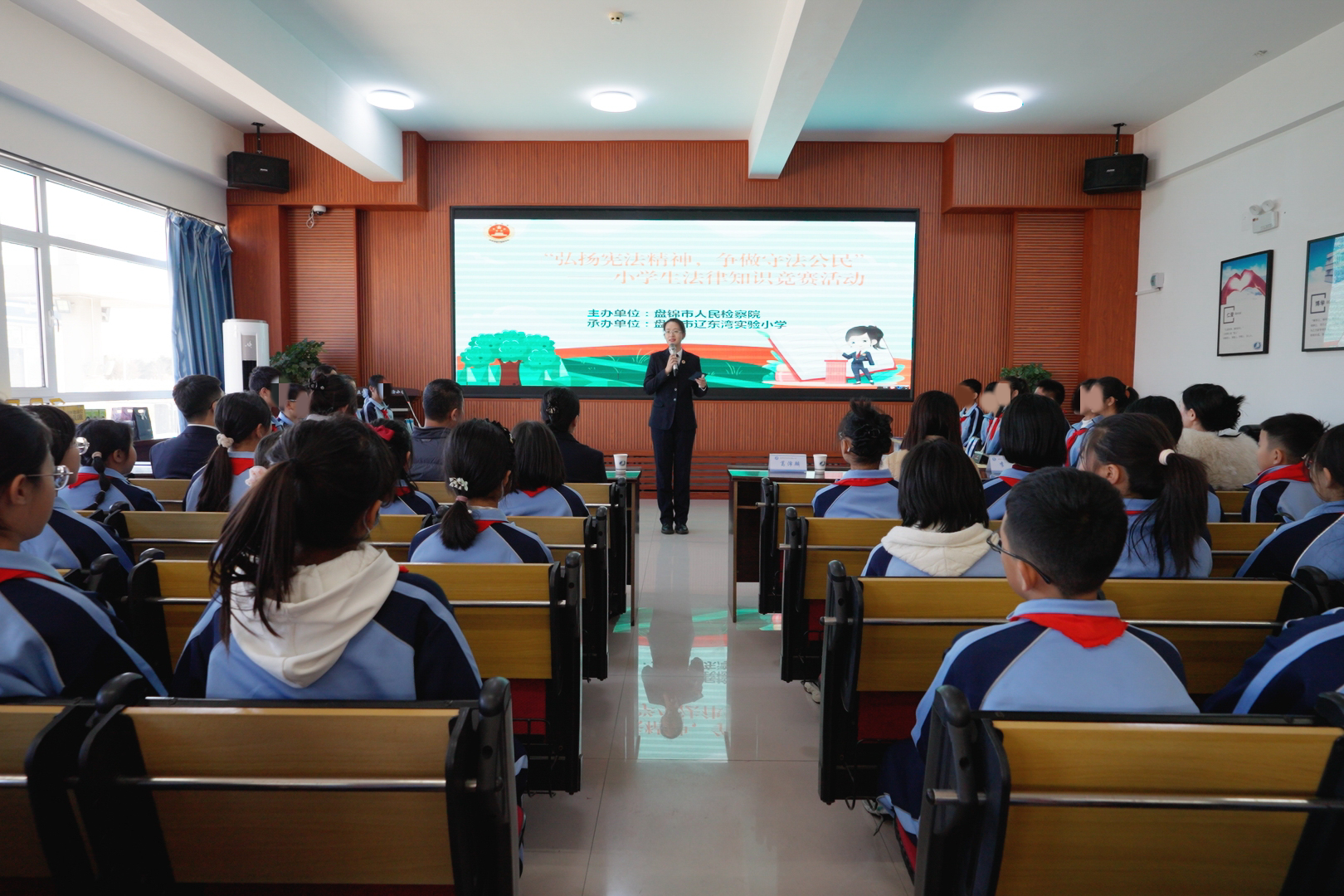 為弘揚憲法精神,進一步提升未成年人普法質(zhì)效,推動檢察官擔任法治副校長“實職化”履職,在第11個憲法日來臨之際,盤錦市人民檢察院的未檢干警們走進遼東灣實驗小學,與學校聯(lián)合開展了小學生法律知識競賽活動。競賽共有“表情猜詞”“動動腦筋來擴句”和“知識競答”三個環(huán)節(jié),形式豐富多彩,內(nèi)容涵蓋了《中華人民共和國憲法》《中華人民共和國未成年人保護法》《中華人民共和國預防未成年人犯罪法》《中華人民共和國刑法》《中華人民共和國民法典》等多方面與孩子們的生活學習息息相關(guān)的法律知識。賽前檢察干警還對參賽選手們進行了專業(yè)輔導。