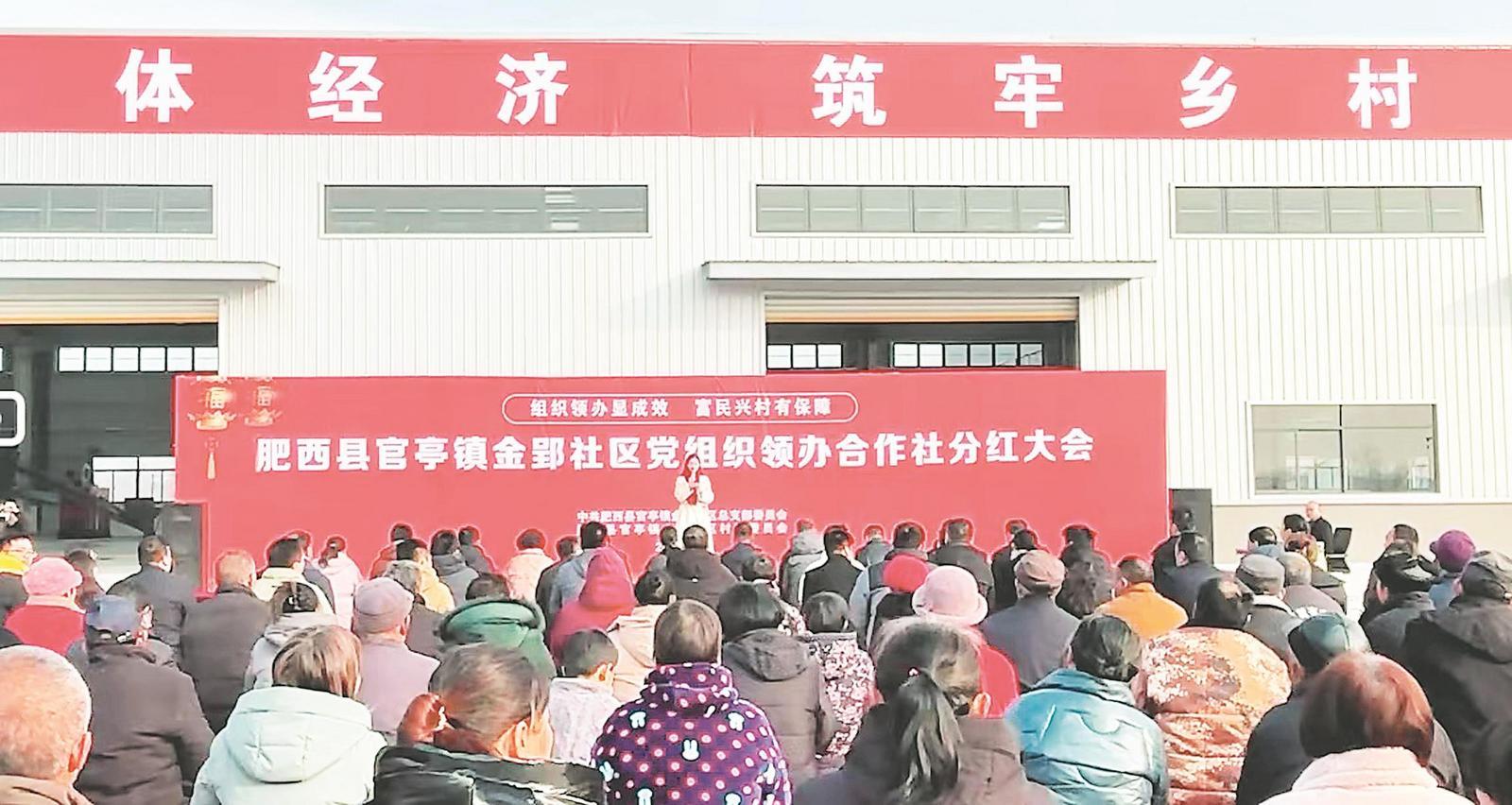 肥西縣官亭鎮(zhèn)金郢社區(qū)黨組織領(lǐng)辦合作社開展分紅活動(圖片由肥西縣委組織部提供)