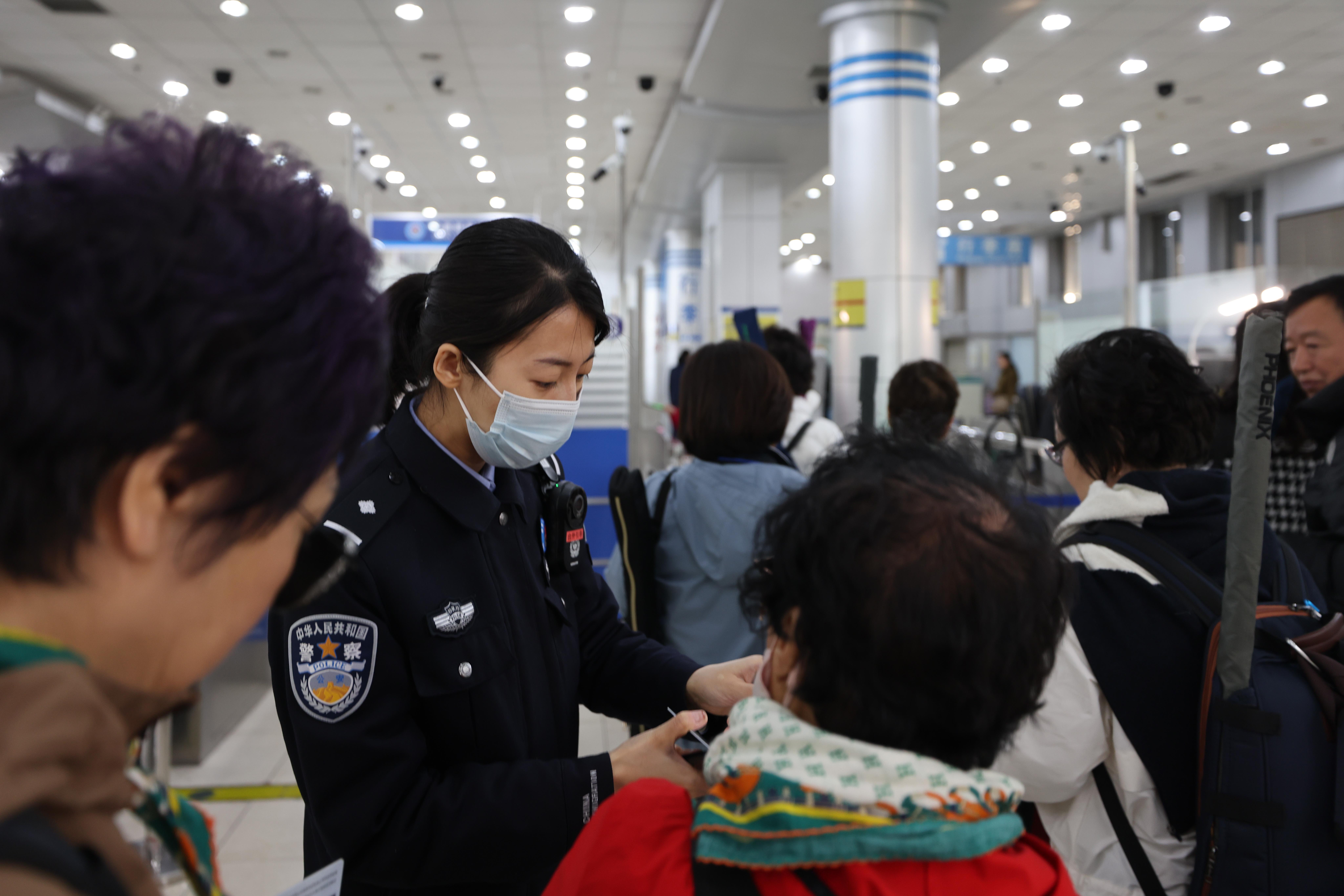 “為全力做好旅行團(tuán)通關(guān)保障工作,我們邊檢機(jī)關(guān)主動(dòng)靠前服務(wù),第一時(shí)間與口岸聯(lián)檢單位、船方及旅行社進(jìn)行通聯(lián),提前掌握?qǐng)F(tuán)隊(duì)人員信息,協(xié)調(diào)旅行社通過(guò)整團(tuán)分組、多批次、不間斷的方式,組織旅行團(tuán)成員分批分時(shí)抵達(dá)口岸通關(guān)現(xiàn)場(chǎng),確??诎吨刃蚓弧M瑫r(shí)增派前臺(tái)查驗(yàn)警力,開足查驗(yàn)通道,選派精通韓語(yǔ)的民警靠前服務(wù),解決韓國(guó)旅客語(yǔ)言溝通不暢、地理位置不熟、政策法規(guī)不清等難題,縮短旅客通關(guān)時(shí)長(zhǎng),確保旅客高效快捷通關(guān)。”石島邊檢站執(zhí)勤一隊(duì)教導(dǎo)員慕楠說(shuō)。