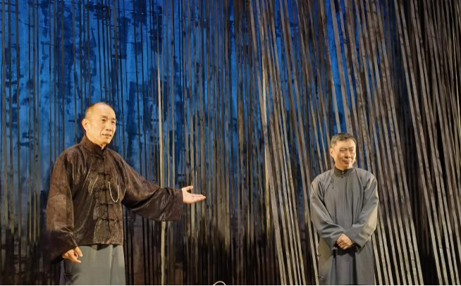 2025年3月末,由方旭、郭笑主演的話劇《老李對愛的幻想》在北京老舍劇場成功展演。該劇改編自老舍同名長篇小說《離婚》,講述主人公小“智識”分子老李掙扎于詩意幻想和庸俗實際,在傳統(tǒng)和變革進退兩難的苦悶中,經(jīng)由一起“政治”暗殺促成自我蛻變的無奈故事。劇中著力表現(xiàn)民國離婚鬧劇風(fēng)潮下,小市民的情感困境及文化心態(tài),正如老李的舞臺形象:一身灰色長衫,圍著藍色圍巾——灰藍色在老舍筆下是“最不得人心的”,因為“一遇上陽光管保只剩下灰,一點也不藍”。