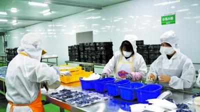 工人們在車間分揀藍莓。高嘉蓉 攝