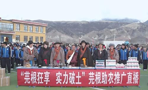 種地少年在青海省囊謙縣開(kāi)展助農(nóng)直播,芫根上架后迅速售罄。資料圖