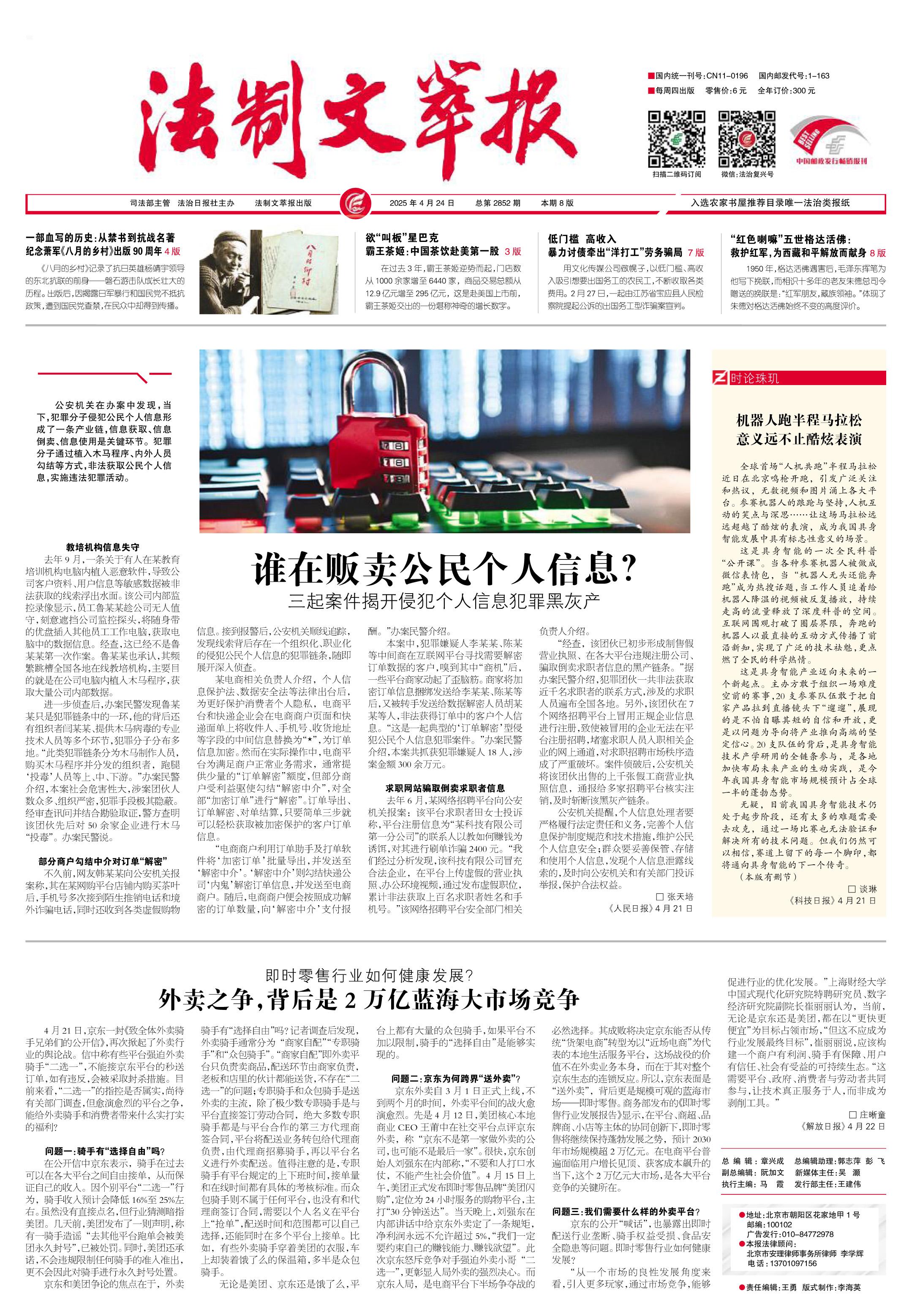 2025年4月24日《法制文萃報》總第2852期1版