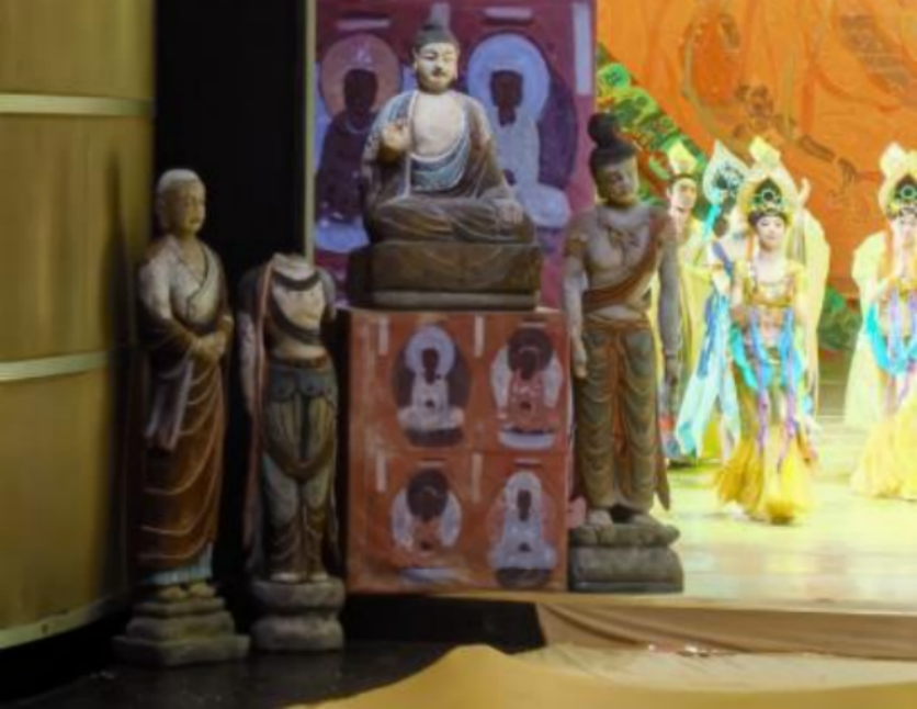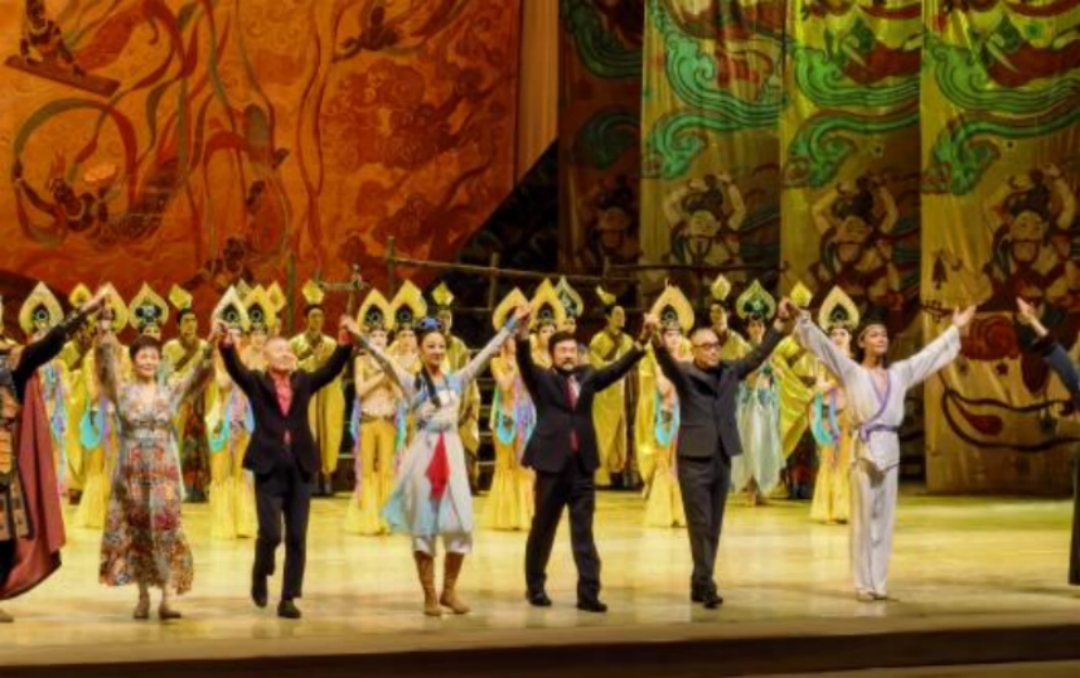 《大夢敦煌》由蘭州歌舞劇院創(chuàng)排,于2000年在京首演,可謂占盡天時地利人和。當(dāng)其時,上有2019年中央領(lǐng)導(dǎo)視察莫高窟,有力推動敦煌文化研究服務(wù)共建“一帶一路”決策;前有甘肅省歌舞劇院于1979年創(chuàng)作的“中國舞劇的里程碑”——舞劇《絲路花語》作標(biāo)桿;后有地方政府大力支持,集一流的制作班底于一身,想不出彩兒都難。