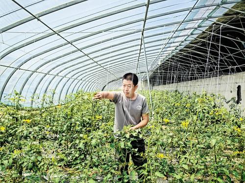 蔬菜大棚產(chǎn)業(yè)的發(fā)展還帶動(dòng)了當(dāng)?shù)卮迕窬蜆I(yè)。村民劉海燕是一座黃瓜種植大棚的老員工,自從黃瓜大棚建成后,她就在此工作?!耙荒昴軖暌蝗f五六千元,還能照顧家里,挺知足。”提起在家門口工作的感受,劉海燕說。