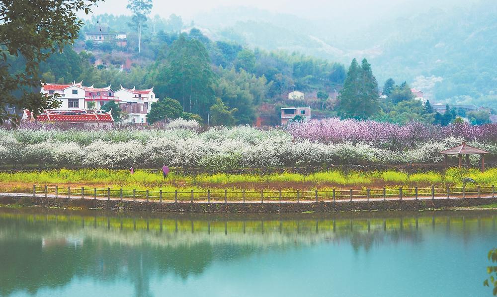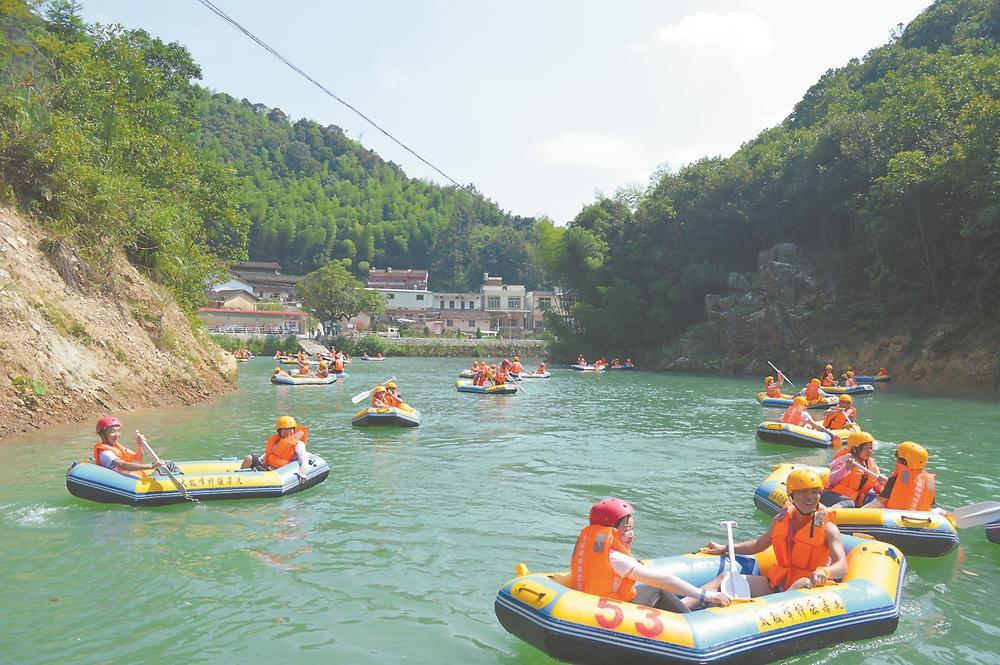 一聲哨響,數(shù)百只游艇從上游順流而下,游客們帶著水槍,打起了水仗。憑著這條水道打造的“神搖漂流”旅游項(xiàng)目如今已成為平和旅游的一張名片,年接待游客超過10萬人次。