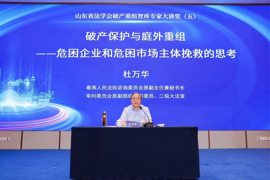 最高人民法院咨詢委員會(huì)原副主任兼秘書(shū)長(zhǎng)、審判委員會(huì)原副部級(jí)專職委員、二級(jí)大法官杜萬(wàn)華作《破產(chǎn)保護(hù)與庭外重組——危困企業(yè)和危困市場(chǎng)主體挽救的思考》的主旨發(fā)言,以黨的二十屆三中全會(huì)為何要將破產(chǎn)制度確立為市場(chǎng)經(jīng)濟(jì)基礎(chǔ)制度的深層原因?yàn)榍腥朦c(diǎn),進(jìn)而闡釋市場(chǎng)主體活動(dòng)是市場(chǎng)經(jīng)濟(jì)發(fā)展的核心動(dòng)力,強(qiáng)調(diào)受經(jīng)濟(jì)周期影響,破產(chǎn)是市場(chǎng)經(jīng)濟(jì)中的常態(tài)化現(xiàn)象。針對(duì)“談破色變”的認(rèn)知誤區(qū),主張應(yīng)以積極、理性的態(tài)度正視破產(chǎn)制度。他詳細(xì)論述了我國(guó)破產(chǎn)制度的人民性性質(zhì)及保護(hù)性、救濟(jì)性、治理性等特征;同時(shí),對(duì)庭外重組進(jìn)行詳細(xì)論述,并解讀了為什么要搞庭外重組、如何搞好庭外重組,應(yīng)將庭外重組工作與司法審判、管理人工作等做好協(xié)同、銜接,提出下一步的工作是建立司法重整、司法和解、破產(chǎn)清算工作機(jī)制,從而推動(dòng)整體制度的完善。他憑借深厚的司法實(shí)踐積淀,在深入解析破產(chǎn)保護(hù)與庭外重組協(xié)同價(jià)值的同時(shí),更精準(zhǔn)剖析了危困企業(yè)及市場(chǎng)主體的系統(tǒng)性挽救路徑。