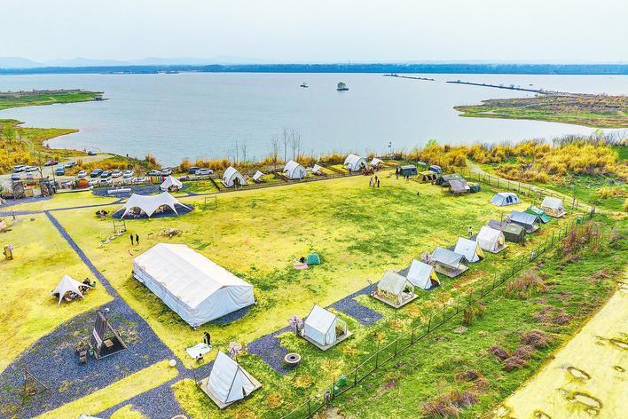 滾滾漢江碧波蕩漾,岸邊扎起的天幕下,三三兩兩圍坐的游客歡笑聲不斷、悠然自得。6月17日,記者走進(jìn)湖北省襄陽(yáng)市樊城區(qū)牛首鎮(zhèn)龐營(yíng)村牧云生態(tài)農(nóng)場(chǎng)露營(yíng)地(以下簡(jiǎn)稱“牧云露營(yíng)地”),聆聽(tīng)兩位襄陽(yáng)“80后”馬雄和趙艷飛,將1.2萬(wàn)平方米亂石荒灘改造為網(wǎng)紅露營(yíng)地的故事。