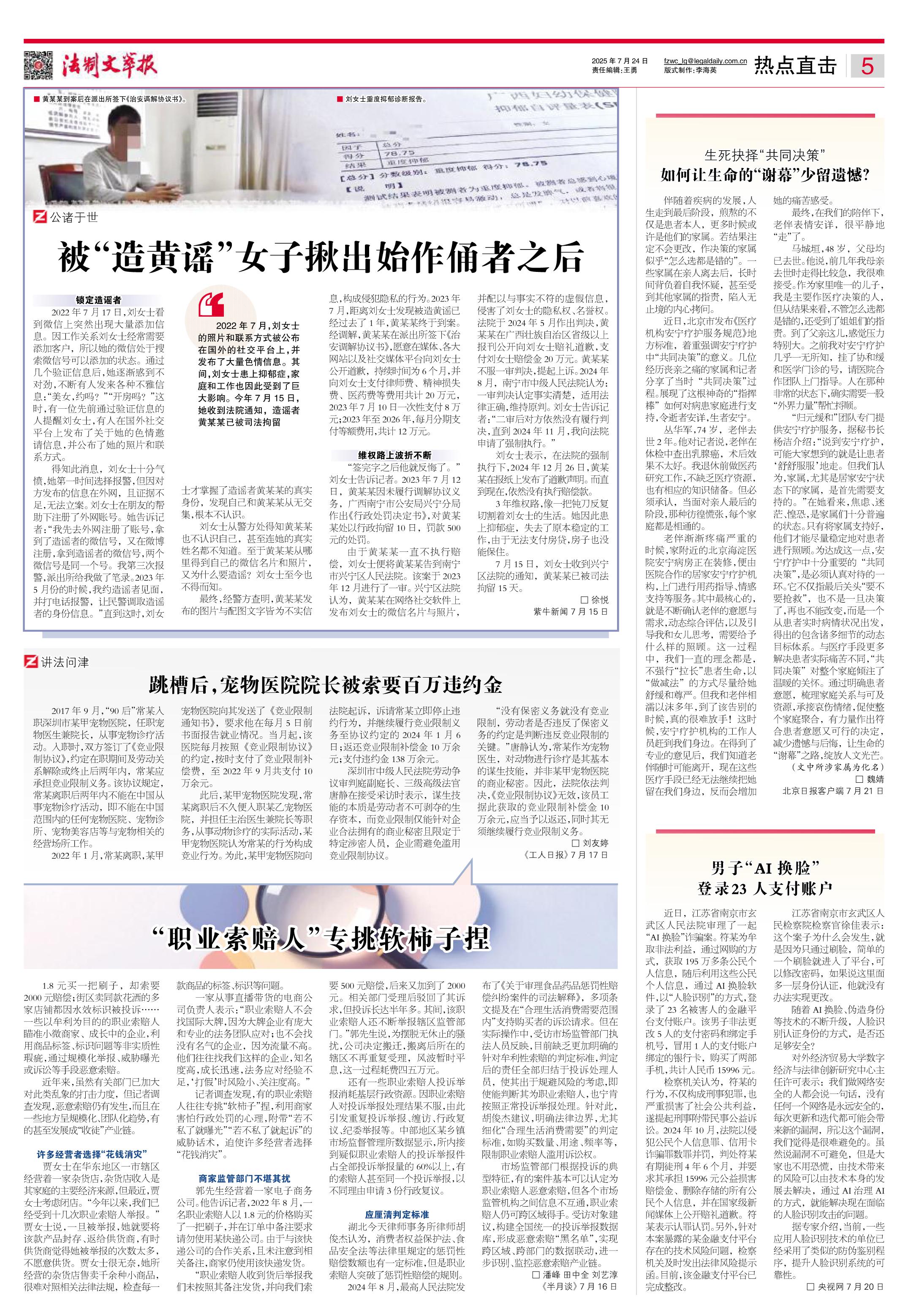 2025年7月24日《法制文萃報》總第2865期5版