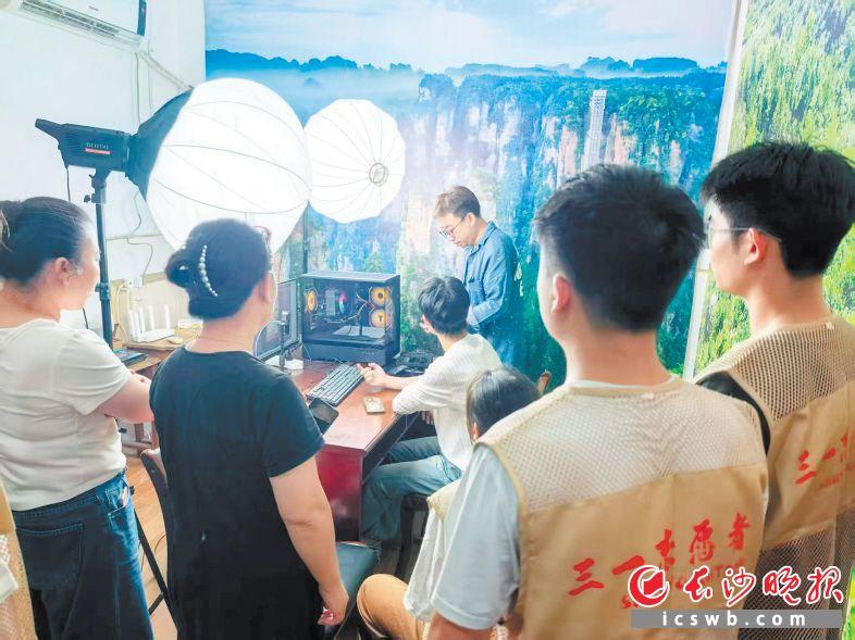 湖南三一工業(yè)職業(yè)技術(shù)學(xué)院“三川星火”志愿服務(wù)團(tuán)邀請村民觀摩并現(xiàn)場指導(dǎo)“直播帶貨”。
