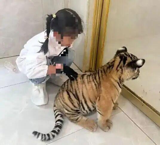 近日,在廣西平南縣一動物園內(nèi),一名7歲小女孩與小老虎近距離互動時,被咬傷右腿。