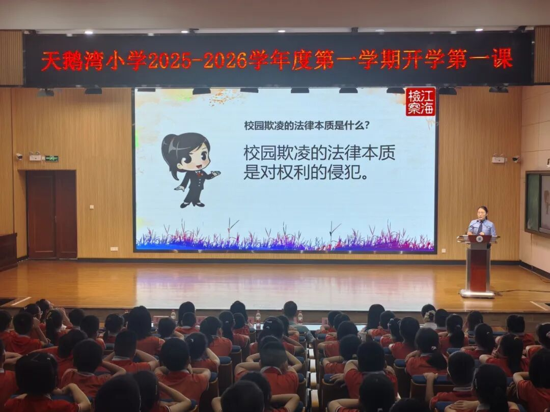 江海區(qū)檢察院黨組副書記、副檢察長程生彥和第二檢察部主任鐘榮杰,分別以滘頭小學(xué)和陽光學(xué)校法治副校長的身份,依托駐校檢察官工作室,精準(zhǔn)對接校園實際,開展以“與法同行,護(hù)校安園——堅決向?qū)W生欺凌說‘不’”為主題的法治安全教育課。