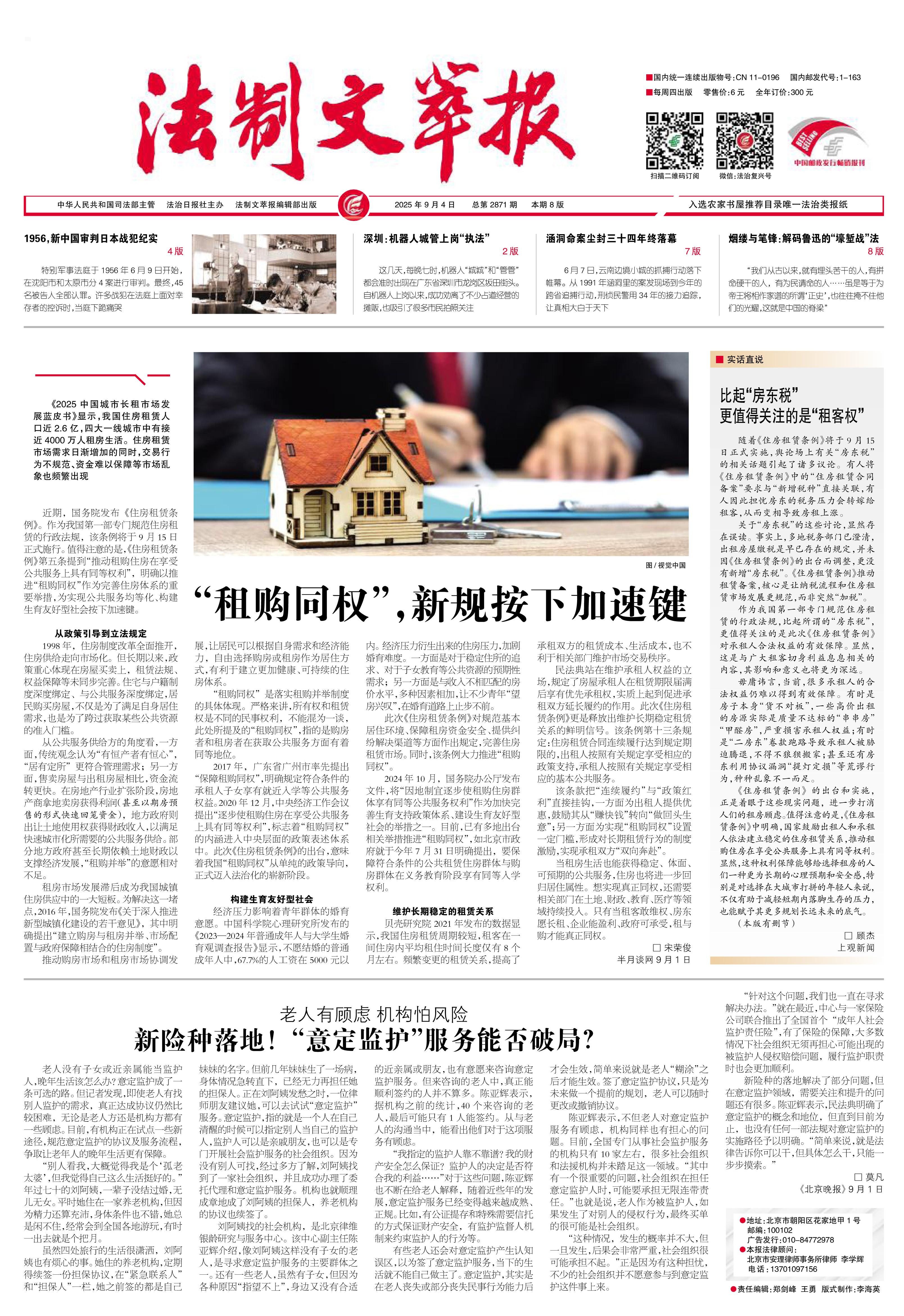 2025年9月4日《法制文萃報》總第2871期1版