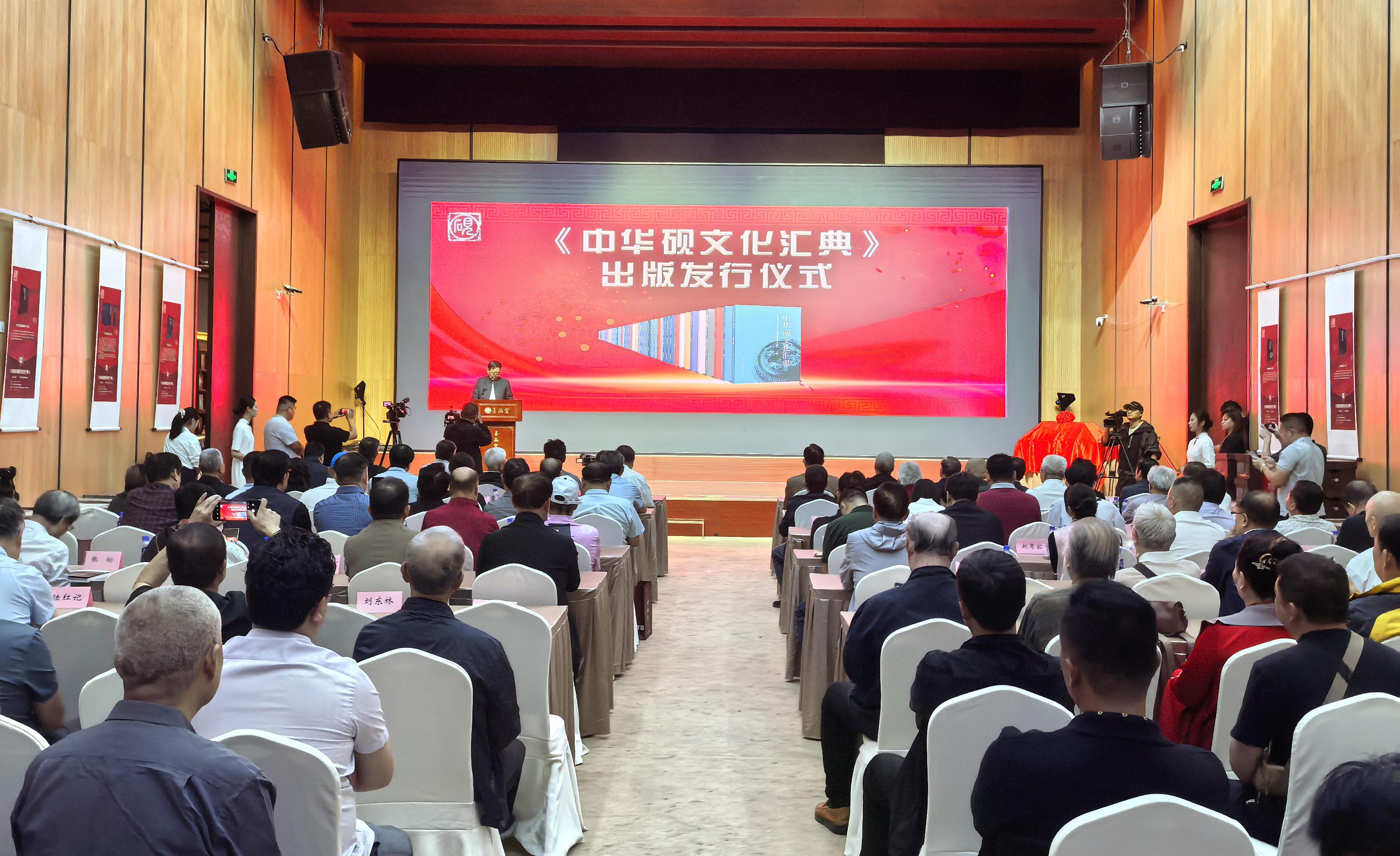 《中華硯文化匯典》分別由北京工藝美術(shù)出版社以及人民美術(shù)出版社出版,共分七卷共20本總計(jì)800萬(wàn)字,時(shí)任中華炎黃文化研究會(huì)會(huì)長(zhǎng)許嘉璐擔(dān)任編審委員會(huì)名譽(yù)主任并撰寫《總序》;劉紅軍、張希清為主任,王震中、劉慶柱等史學(xué)、文物、考古領(lǐng)域?qū)<覍W(xué)者組成編審委員會(huì)。首發(fā)儀式上,全體與會(huì)人員對(duì)百位硯文化專家、學(xué)者和志愿者持續(xù)十?dāng)?shù)年艱辛編典表達(dá)了各自的敬意,大家一致認(rèn)為:《中華硯文化匯典》既對(duì)硯文化璀璨的歷史進(jìn)行了梳理和總結(jié),又對(duì)當(dāng)代硯文化的現(xiàn)狀和研究成果作了較為充分記錄與展示,既有很高學(xué)術(shù)性,又具有向大眾普及的功能;它的出版發(fā)行既是對(duì)中華硯文化歷史的梳理總結(jié),也是當(dāng)代硯文化發(fā)展成果的集中展示和記錄;它對(duì)于宣傳和普及硯臺(tái)文化知識(shí),引領(lǐng)和指導(dǎo)硯臺(tái)文化研究,推動(dòng)中國(guó)硯文化事業(yè)整體發(fā)展都具有十分重大的意義。(盧敏、廖振華 文/于江攝 影)