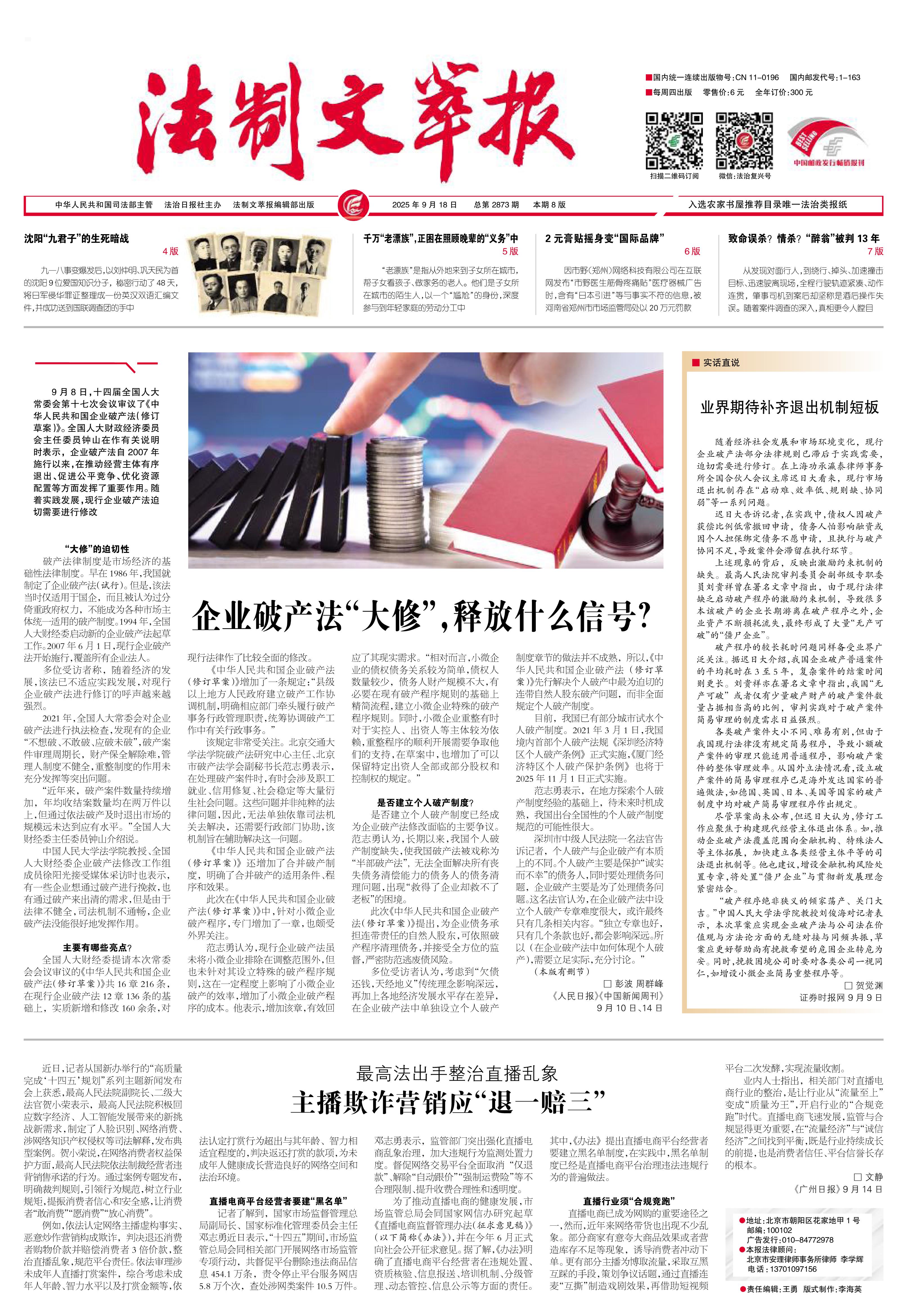 2025年9月18日《法制文萃報(bào)》總第2873期1版