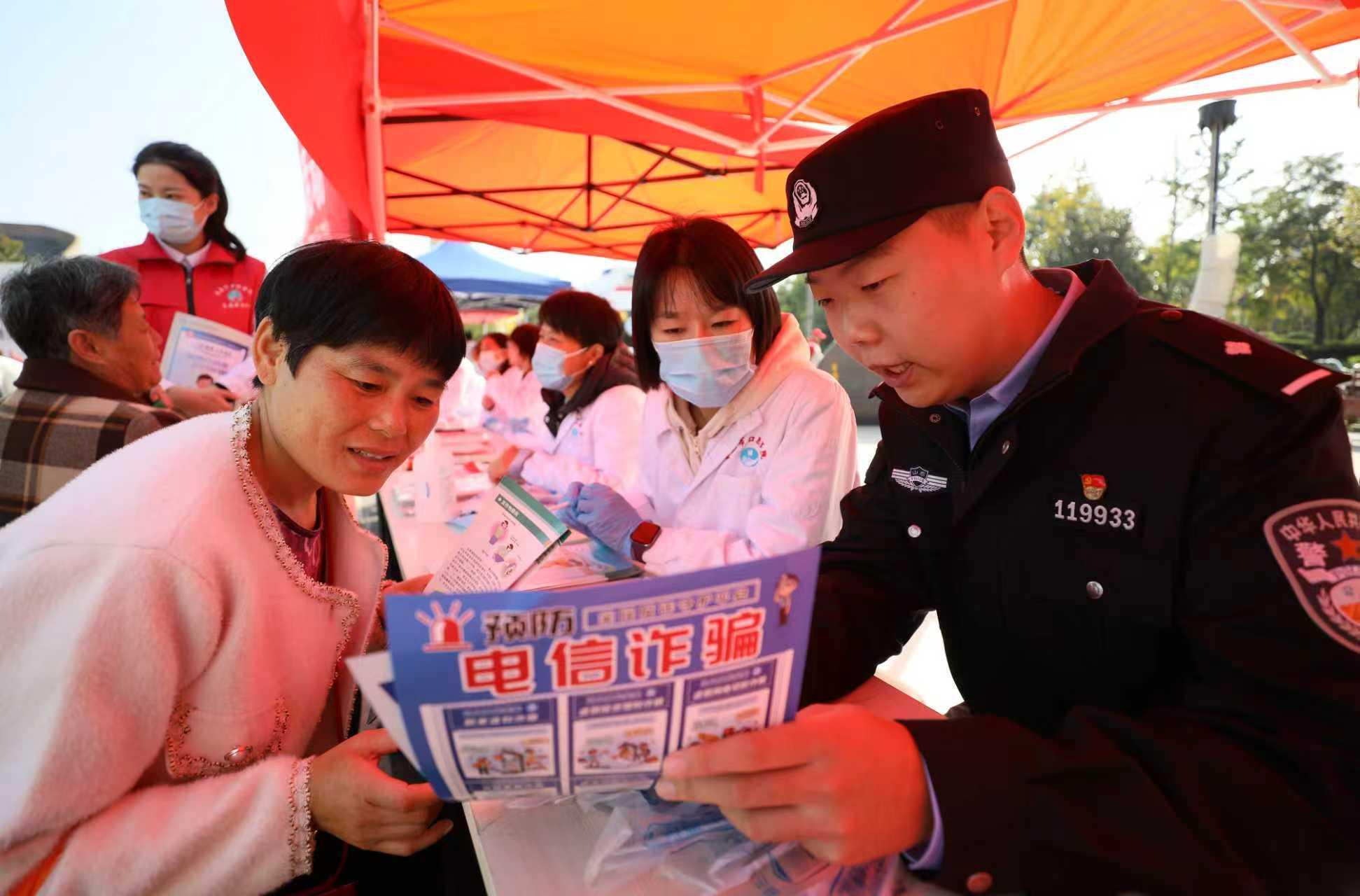 10月29日,在山東省棗莊市臺(tái)兒莊區(qū)興中廣場(chǎng),民警在向前來(lái)義診的市民普及防范電信網(wǎng)絡(luò)詐騙知識(shí)。當(dāng)日是農(nóng)歷九月初九,2025年棗莊市暨臺(tái)兒莊區(qū)“敬老月”重陽(yáng)節(jié)健康義診活動(dòng)在此舉行,在做好為廣大居民義診的同時(shí),臺(tái)兒莊區(qū)衛(wèi)生健康局邀請(qǐng)臺(tái)兒莊公安分局反詐民警,向前來(lái)義診的市民發(fā)放防范電信網(wǎng)絡(luò)詐騙宣傳彩頁(yè),普及相關(guān)知識(shí),告訴大家在就醫(yī)就診過程中要切實(shí)提高電信網(wǎng)絡(luò)詐騙防范意識(shí)。(山東省棗莊市公安局臺(tái)兒莊分局 張嚴(yán)新)