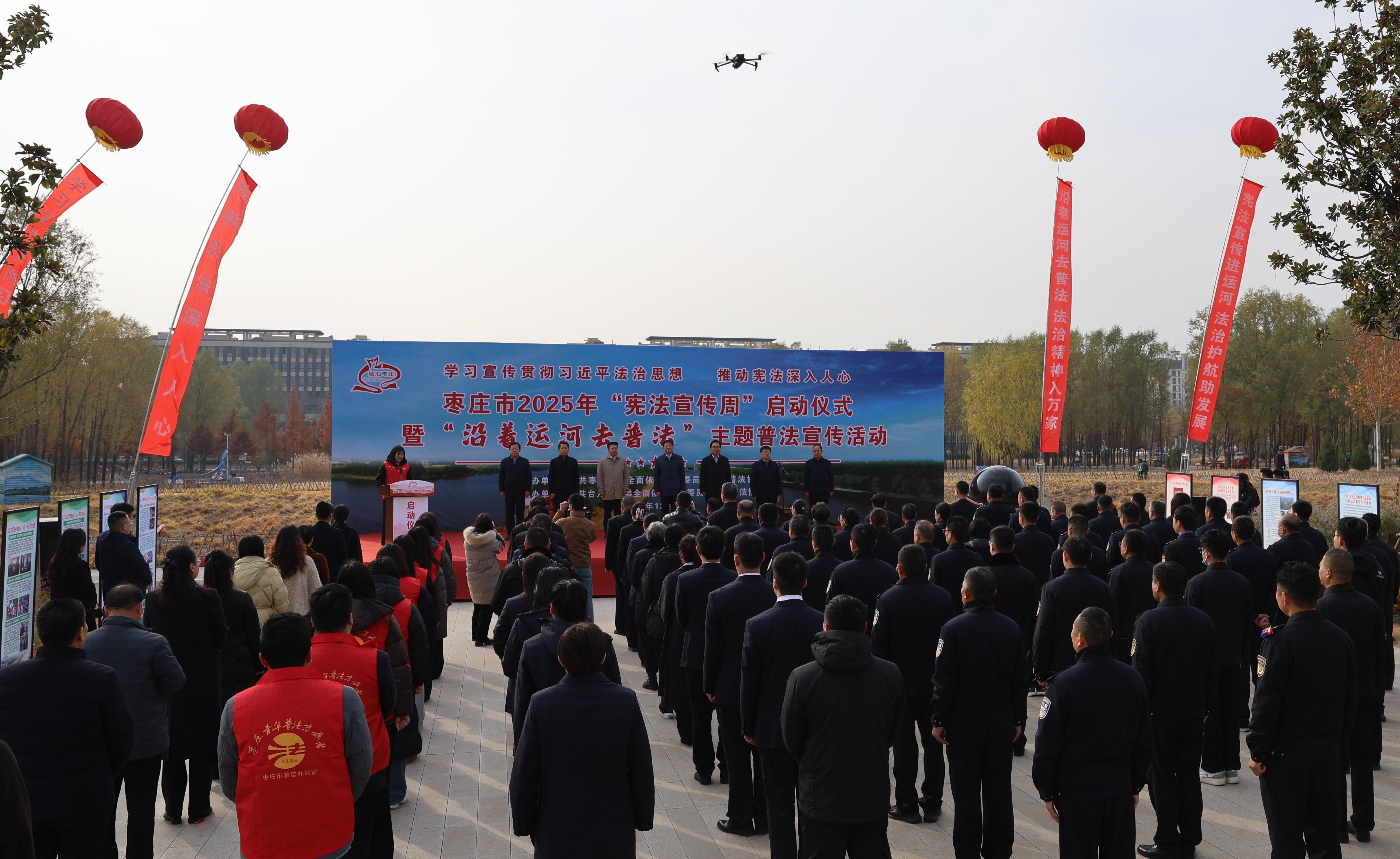 12月2日上午,在第12個(gè)國家憲法日即將到來之際,棗莊市2025年“憲法宣傳周”啟動儀式暨“沿著運(yùn)河去普法”主題普法宣傳活動在臺兒莊憲法廣場舉行。市委常委、宣傳部部長、統(tǒng)戰(zhàn)部部長陳永生,市人大常委會副主任孫恒,市司法局黨組書記、局長孫守春等出席活動,臺兒莊區(qū)委副書記、區(qū)長李軍致辭,市、區(qū)兩級人大代表和政協(xié)委員、“誰執(zhí)法誰普法”相關(guān)單位人員、普法志愿者及媒體代表共同參與。