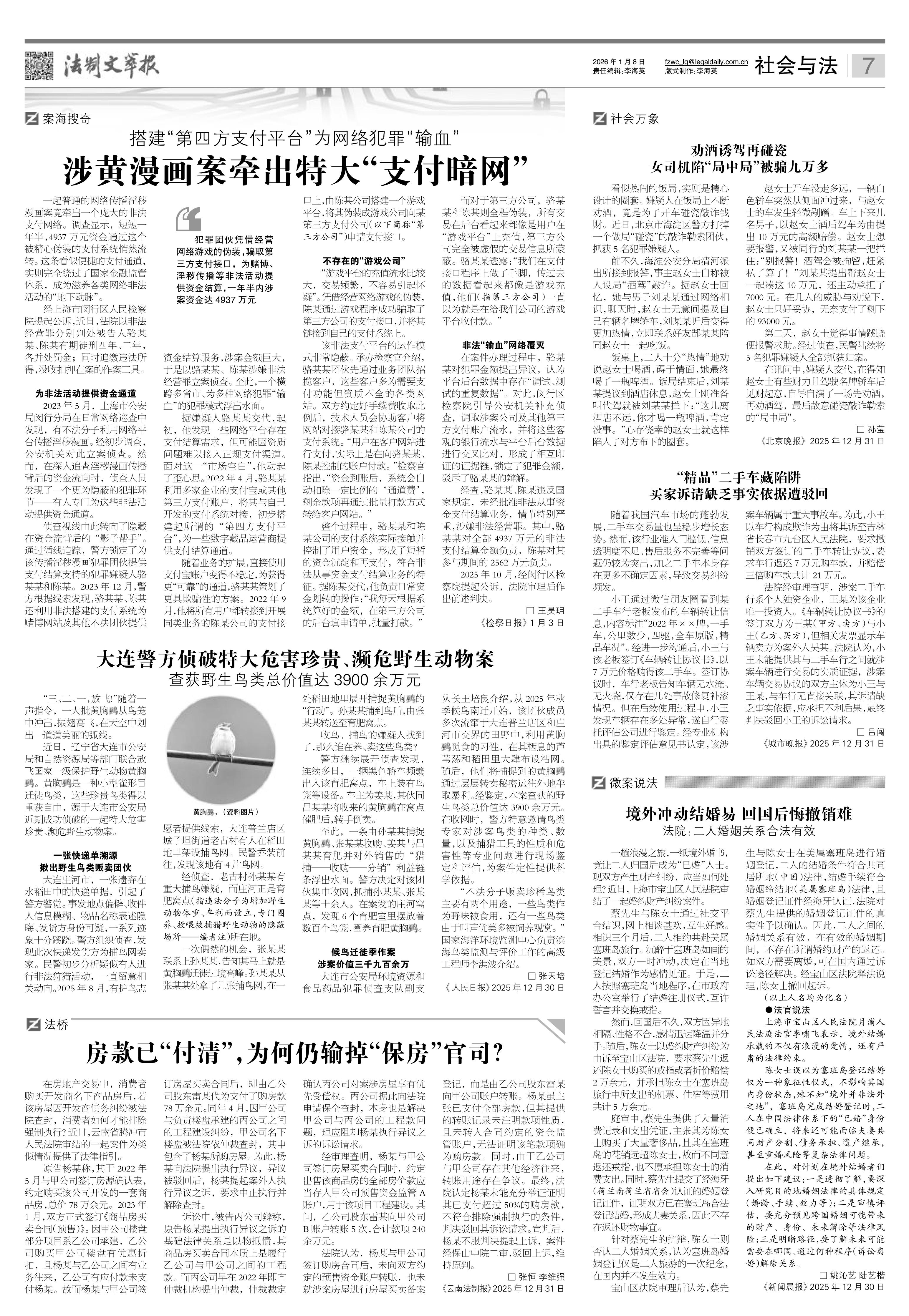 2026年1月8日《法制文萃報》總第2888期7版