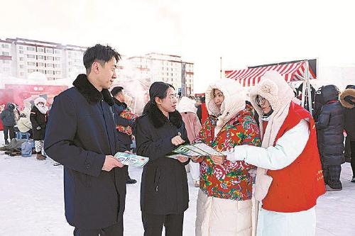 “大姐,買生鮮肉記得先看看有沒有藍(lán)色的檢疫合格章,檢驗(yàn)安全的咱吃著才安心!”寒風(fēng)雖料峭,歲暖初春來,內(nèi)蒙古自治區(qū)扎蘭屯市大河灣鎮(zhèn)鄉(xiāng)村大集上的吆喝聲,一聲高過一聲,扎蘭屯市檢察院的“法宣”小攤兒也在其中?!笆乘幇踩媛沸?,法治護(hù)航過新春”普法活動(dòng)正在這里火熱開展,引得趕集的群眾紛紛駐足。