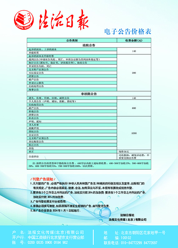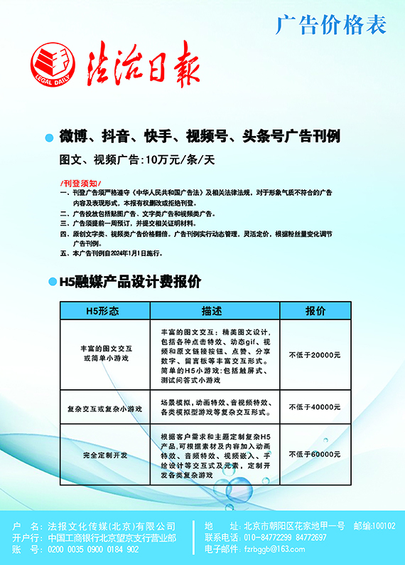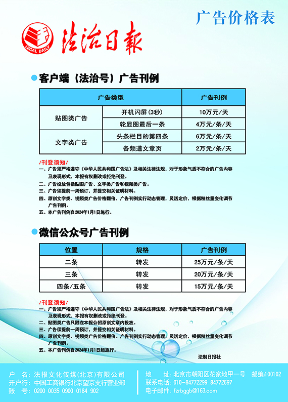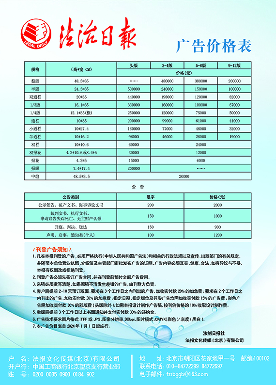 法治日報(bào)(含社區(qū)版)廣告價(jià)格表