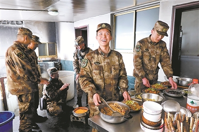 戰(zhàn)士夏夢鑫兼任哨所的“大廚”,他喜歡和官兵交流做各地的家鄉(xiāng)菜,把哨所廚房變成了一個融合東西南北中菜肴的“烹飪學?!?。