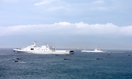 隨著指揮員一聲令下,戰(zhàn)艦森然列陣,萬里長空上戰(zhàn)機穿云破霧,水際灘頭前戰(zhàn)車突擊上陸,一場聯(lián)合登陸演習(xí)在諸軍兵種數(shù)千名官兵密切協(xié)同下拉開帷幕。