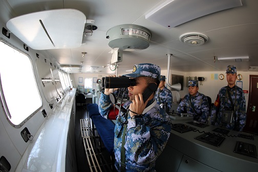 圖為官兵精心操縱艦艇。 劉中濤 攝