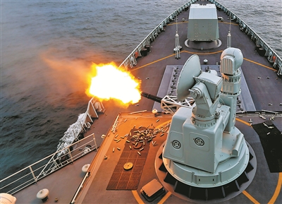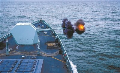 圖為主炮對(duì)海面目標(biāo)實(shí)施火力打擊。