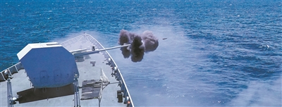 “開火!”占領(lǐng)有利攻擊陣位后,玉林艦指揮員果斷下達(dá)作戰(zhàn)命令?!稗Z!轟!轟!”一枚枚炮彈裹挾著濃煙沖出炮膛,直撲目標(biāo)。
