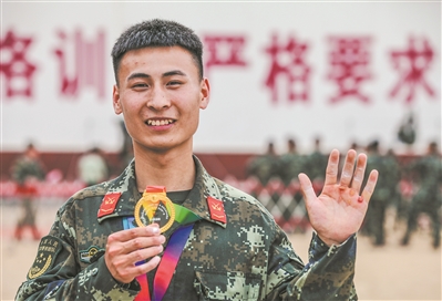 筆者在現(xiàn)場看到,官兵們斗志昂揚,在比拼體能、技能的同時,展現(xiàn)出過硬的意志品質(zhì)。在器械賽場上,戰(zhàn)士常國浩5分鐘內(nèi)完成了75個標(biāo)準(zhǔn)的單杠卷身上,打破了支隊該項目紀(jì)錄?!白龅降?0個的時候,我的手掌上已經(jīng)磨出了血泡,但是聽到大家的加油聲,我逼著自己不斷超越自我、挑戰(zhàn)極限……”賽后,常國浩激動地告訴戰(zhàn)友。