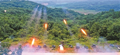“預(yù)備,放!”指揮員一聲令下,各火力分隊在不同射擊陣地,采取多彈種、多梯次配置方式實施打擊。瞬時,一條條“火龍”噴射而出,直撲目標(biāo)。偵察分隊及時收集目標(biāo)毀傷情況,各炮位據(jù)此不斷修正射擊諸元,提高打擊精度。