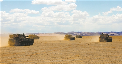 清晨,一陣急促的警報聲響起,官兵們迅速奔向戰(zhàn)車。隨即,數(shù)十輛火炮戰(zhàn)車卷起滾滾沙塵向發(fā)射陣地快速機動。