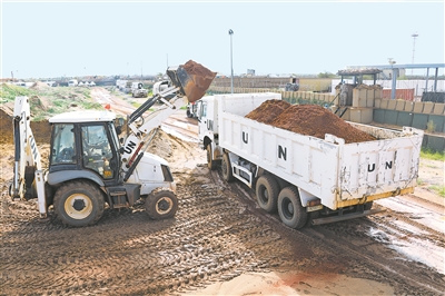 上圖:我維和工兵在施工作業(yè)。王立軍 攝