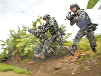 密林深處,一伙“暴恐分子”挾持人質正在逃竄。特戰(zhàn)隊員兵分兩路,夾擊追剿。一陣槍聲過后,“暴恐分子”被悉數(shù)擊斃,人質成功獲救。這是武警云南總隊某支隊機動一中隊實戰(zhàn)化練兵的一幕景象。