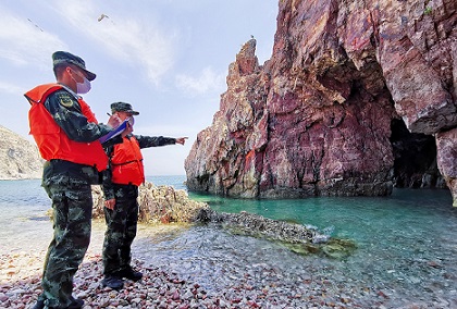 圖為海警執(zhí)法員對轄區(qū)無居民海島進(jìn)行踏查。包新宇 攝