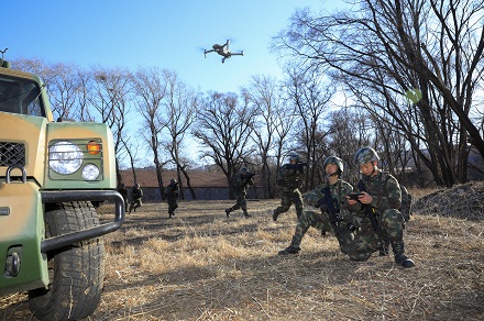 圖為官兵利用無(wú)人機(jī)對(duì)周邊地域展開(kāi)偵查。陳浩 袁偉涵 攝
