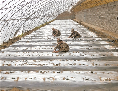 隆冬時(shí)節(jié),高原邊關(guān)寒風(fēng)呼嘯、滴水成冰。然而,新疆軍區(qū)某倉庫生產(chǎn)生活保障中心的數(shù)十座溫室大棚內(nèi),卻是蔥蘢翠綠、蔬果飄香。在常年不見綠色的邊陲,這里被官兵親切地稱作高原“綠洲”。特別是大雪封山之時(shí),這里出產(chǎn)的蔬菜,更是邊防官兵餐桌上的新鮮食品。