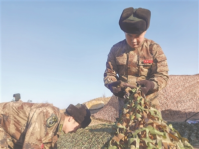 就讀于阜新高等??茖W(xué)校的應(yīng)征青年趙龍,在冬訓(xùn)勤務(wù)保障班班長李梁的帶領(lǐng)下,熟練地安裝支架、鋪設(shè)棚頂、穿掛圍墻……不久,一頂班用帳篷搭設(shè)完畢。聊起參訓(xùn)感受,趙龍興奮地告訴筆者,短短3天時(shí)間,他已經(jīng)參與了搭設(shè)帳篷、構(gòu)工偽裝、警戒執(zhí)勤等課目,“增長見識、學(xué)習(xí)本領(lǐng),這次參加集訓(xùn)收獲頗豐,不僅堅(jiān)定了我參軍入伍的決心,也讓我對今后的軍營生活充滿信心?!?/p>