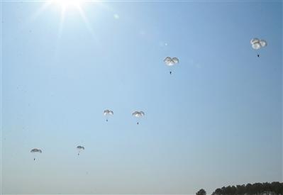 突擊分隊(duì)實(shí)施傘降。