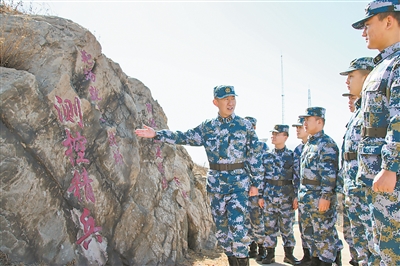 這個(gè)測(cè)控站建在某海島,官兵每天都要走幾公里盤(pán)山路往返于營(yíng)房和機(jī)房之間?!耙钥酁闃?lè)”“測(cè)控精兵”“忠誠(chéng)于黨”……山道旁,一代代官兵在閑暇時(shí)留下的石刻,表達(dá)著他們默默奉獻(xiàn)的熾熱情懷和強(qiáng)軍興軍的青春夢(mèng)想,形成獨(dú)特的石刻文化。