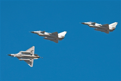 戰(zhàn)機(jī)加力升空。