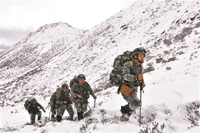 去年8月,馬乾帶領(lǐng)官兵負(fù)重攀爬5個小時,登上一座海拔6000多米的雪山。登頂后,他們克服高山反應(yīng),迅速展開一場營戰(zhàn)術(shù)演練。下山途中,又穿插進(jìn)行武裝泅渡、牽引橫越、夜間破襲戰(zhàn)斗等多個課目訓(xùn)練,整個訓(xùn)練持續(xù)了兩天兩夜。